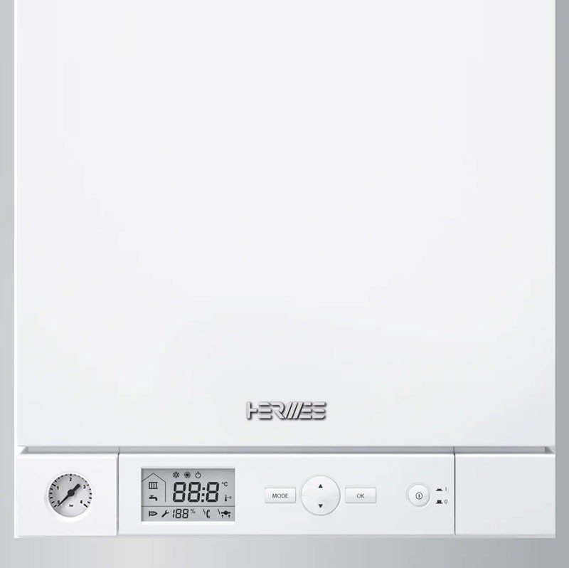 Котел оснащен цифровым дисплеем с 4 кнопками управления для простой и интуитивной понятной настройки.